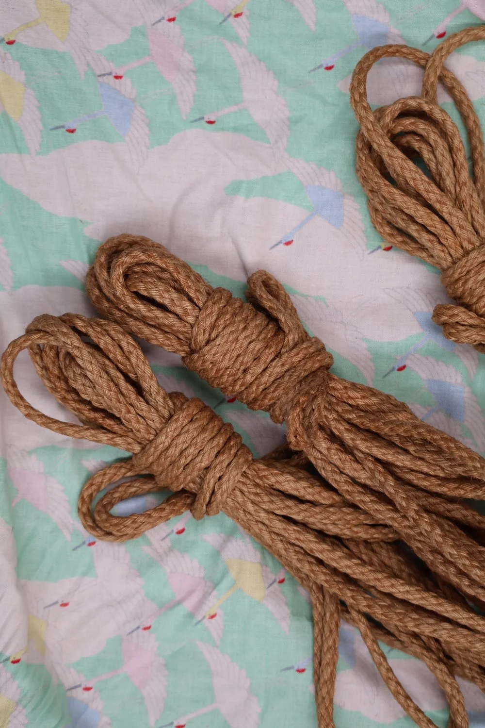 4 x 8-metre lengths of 6 mm braided jute rope - not rated for suspension work